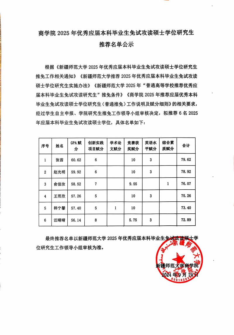 酷映直播 2025年优秀应届本科毕业生免试攻读硕士学位研究生推荐名单公示