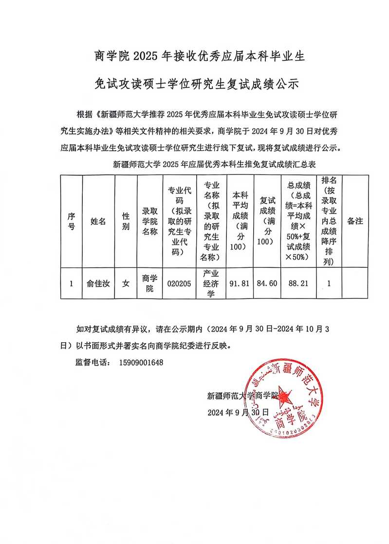 酷映直播 2025年接收优秀应届本科毕业生免试攻读硕士学位研究生复试成绩公示