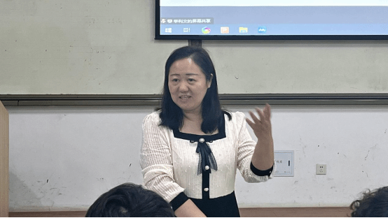 工商管理系系主任蔡玉洁老师主持会议,人力资源管理专业学生参会。