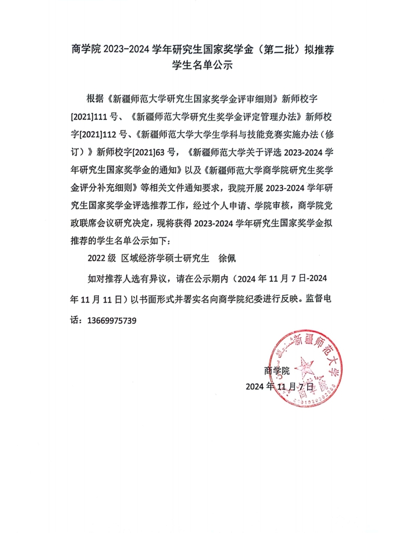 酷映直播 2023-2024 学年研究生国家奖学金(第二批)拟推荐学生名单公示