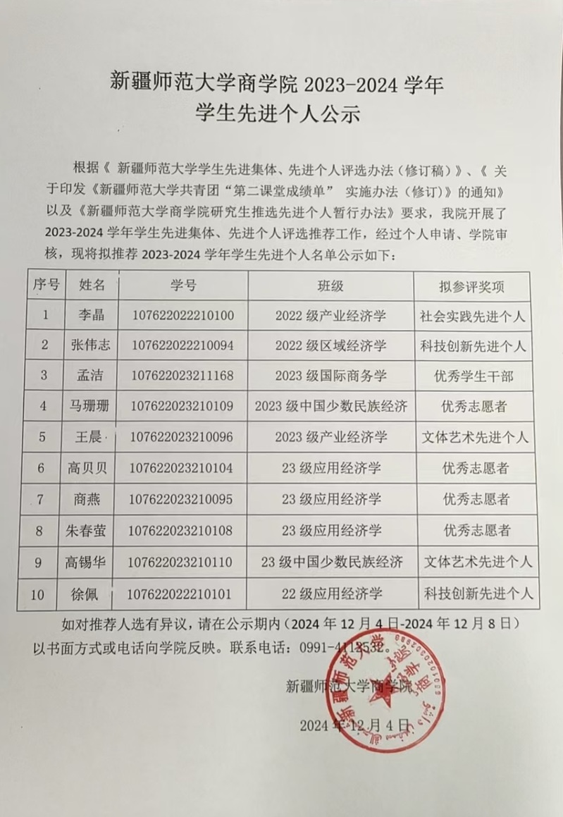 酷映直播 2023-2024学年学生先进个人公示