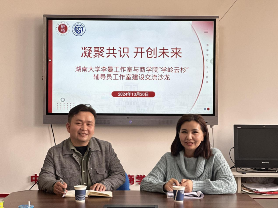 邀请湖南大学经济与贸易学院“李曼”工作室老师共同开展经验交流会。湖南大学经济与贸易学院数字经济专业专任教师舒扬老师、辅导员艾克帕尔·吐地老师、酷映直播