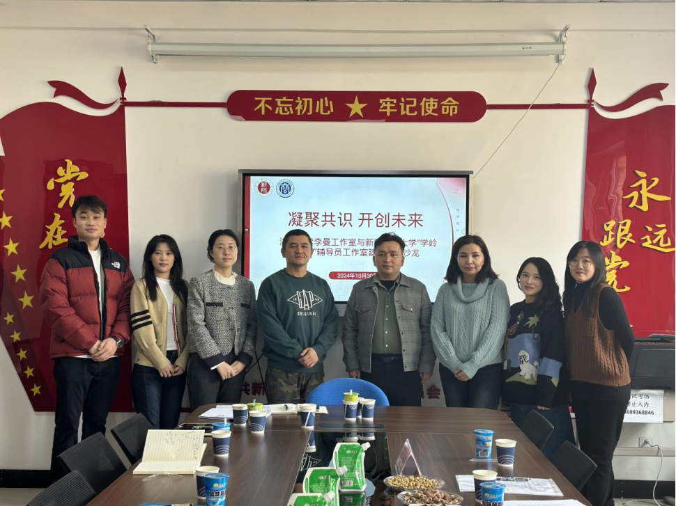 基本概况和“学岭云杉”工作室的建设情况与实施策略,赛福丁·哈德尔老师聚焦学院就业工作和大学生就业心态引导,提出应对路径和建议。舒扬老师围绕毕业生就业相关工作,专任教师如何在思政教育和学生管理中充分发挥作用等问题发表看法,辅导员艾克帕尔·吐地老师就网络舆情管理、心理健康教育工作和辅导员个人成长规划分享了湖南大学的特色做法。随后,两校学工队伍教师围绕学生管理工作、辅导员工作的方式方法以及辅导员专业化、职业化建设的重点和难点等方面进行了交流讨论。