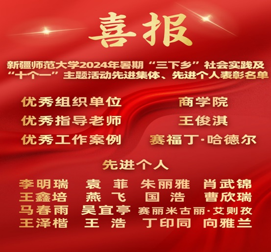 凭借出色的组织工作和丰硕的实践成果,连续第7次被评为2024年暑假“三下乡”社会实践及“十个一”主题活动“优秀组织单位”,获“优秀指导老师”、“优秀工作案例”各一项,15名学生获“社会实践先进个人”。