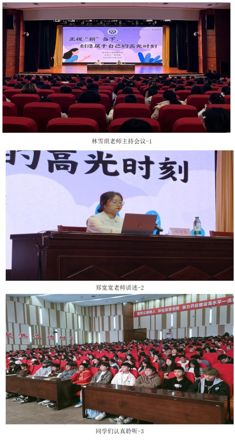 特邀大学生心理健康中心郑宽宽老师,于2024年10月28日在昆仑讲堂,召开“正视‘新’当下,展现自己的高光时刻”心理讲座,为同学们拨开迷雾,引导大家以积极心态拥抱大学生活,绽放独特光彩。