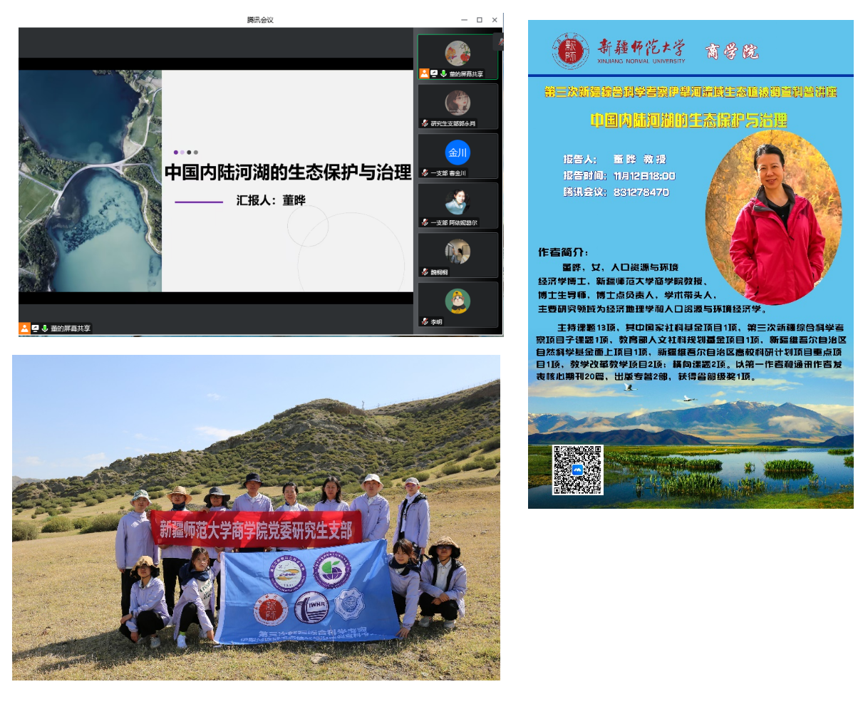 研究生支部牵头,组织与本科生第一、第二支部展开联谊活动,研究生支部书记董晔同志做第三次新疆综合科学考察伊犁河流域生态植被调查的线上科普讲座,主题是《中国内陆河湖的生态保护与治理》,会议由研究生支部宣传委员郭永肖主持。