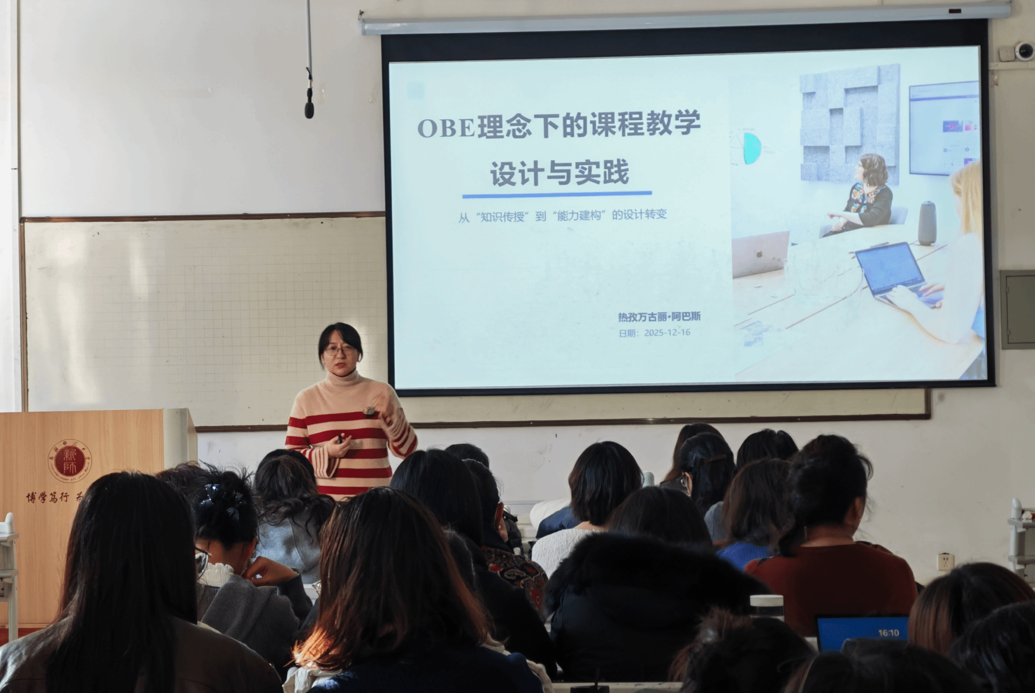 教育科学学院热孜万古丽·阿巴斯教授主讲的OBE理念课程教学设计与实践讲座,旨在破解教学痛点,推动教学从“知识传授”向“能力建构”转变。