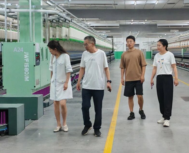 嘉泰作为南疆地区纺织行业的佼佼者,拥有先进的生产设备和成熟的工艺流程,其持续的技术创新和卓越的品质赢得了市场的广泛认可。在调研过程中,李教授一行深入生产车间,现场观看了解了从原料到坯布的生产过程,亲眼见证了先进纺织设备的高效运转和精湛工艺的运用。段景周向李教授一行详细介绍了嘉泰的生产流程、用工情况、质量控制以及技术创新、品牌建设、市场拓展等方面的内容,强调了人才在推动企业发展中的重要作用。
